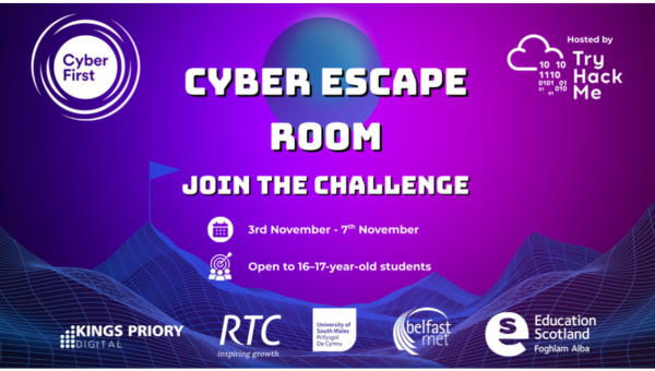 From 3rd – 7th November, students aged 16–17 can take part in the CyberFirst Cyber Escape Room, hosted on @RealTryHackMe.