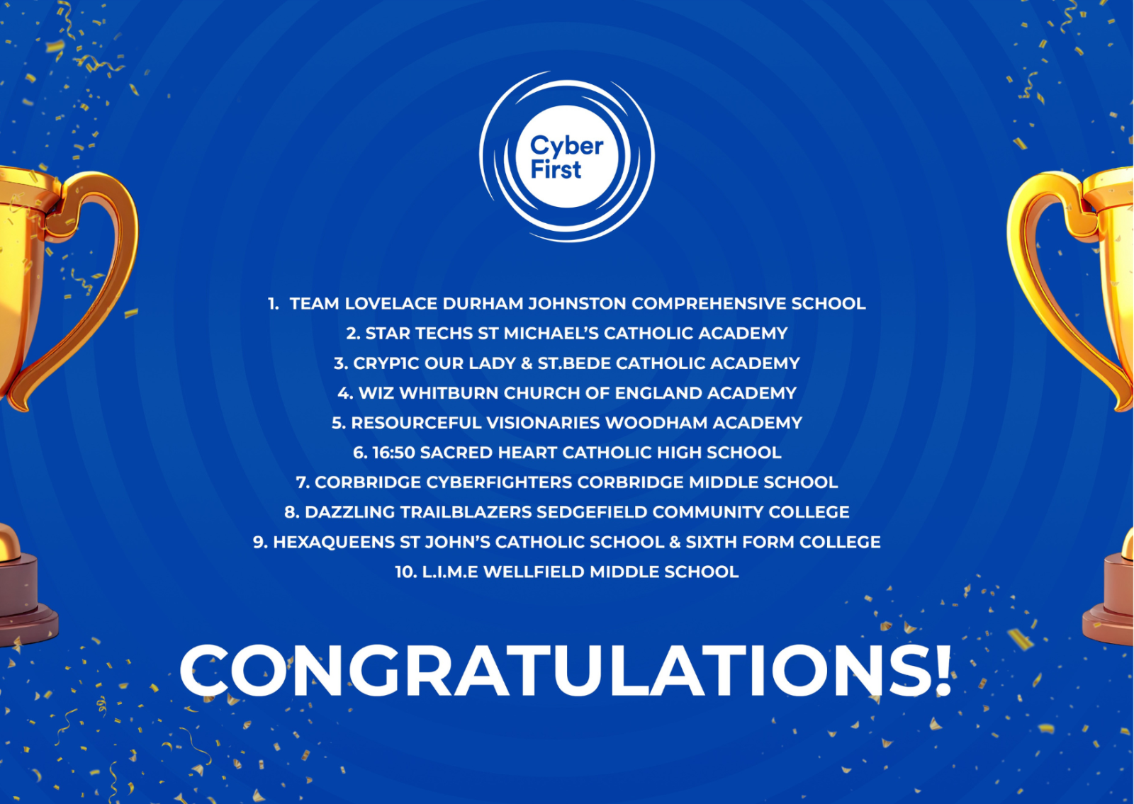 Congratulations to the North East Top 10 teams in this year’s CyberFirst Girls Competition. Your skills and creativity stood out in a tough field — well done to all students, schools, and teachers involved.